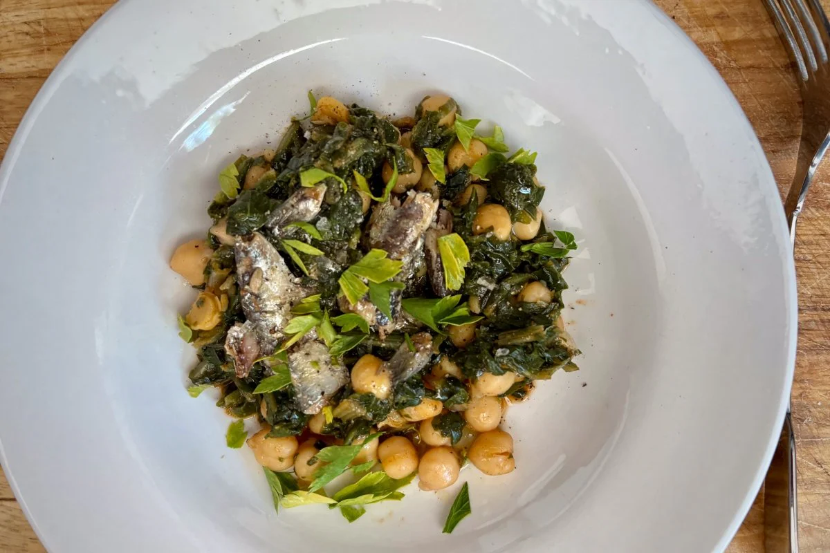 At a trade show, we happened to find the Minnow booth, and we flipped when we tasted their sardines. How can tinned fish be so delicious? And what a natural partner for a bowl of Rancho Gordo heirloom beans! Steve recommends adding them to a bowl of Garbanzos and spinach.